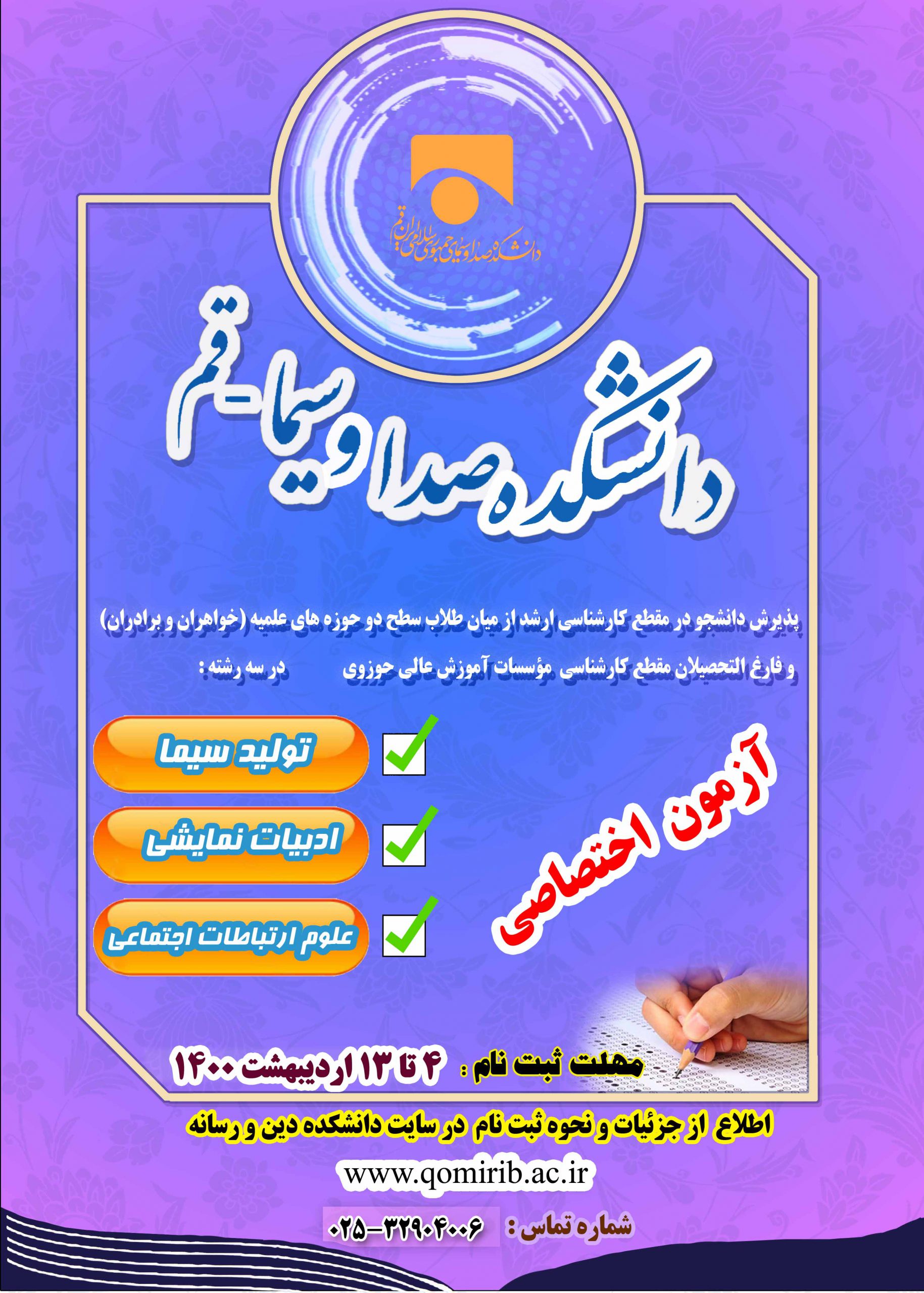 ثبت نام و پذیرش دانشجو در دانشکده صدا و سیما قم
